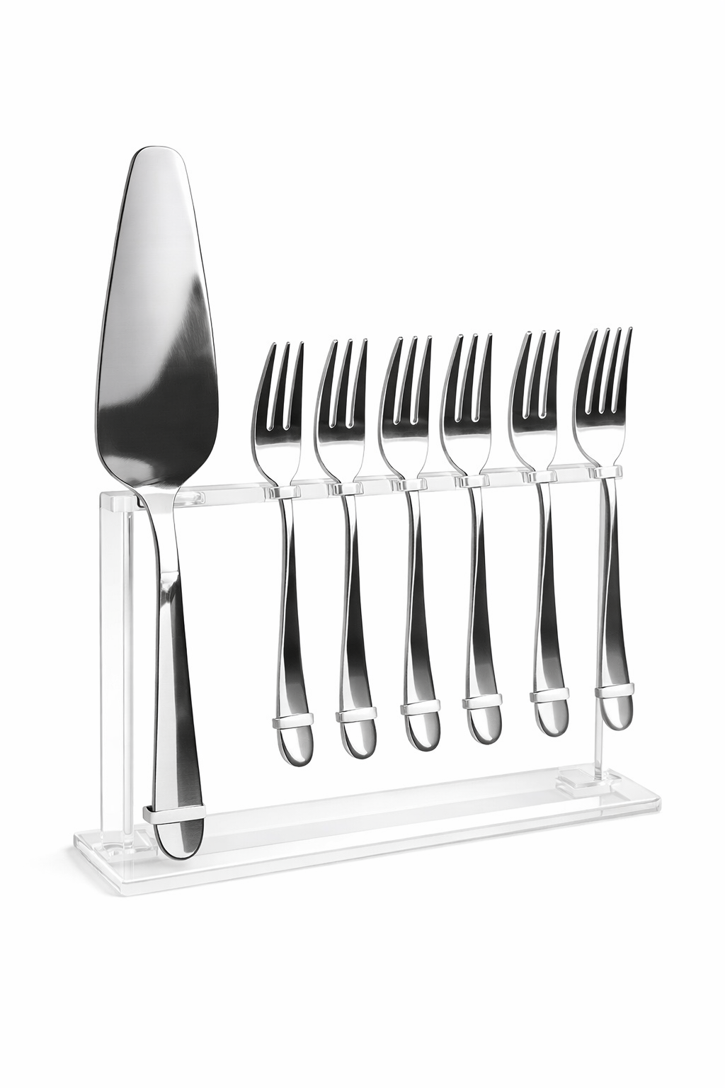 - 6 Furculițe pentru desert: Realizate din inox de înaltă calitate, cu un finisaj lucios și durabil.